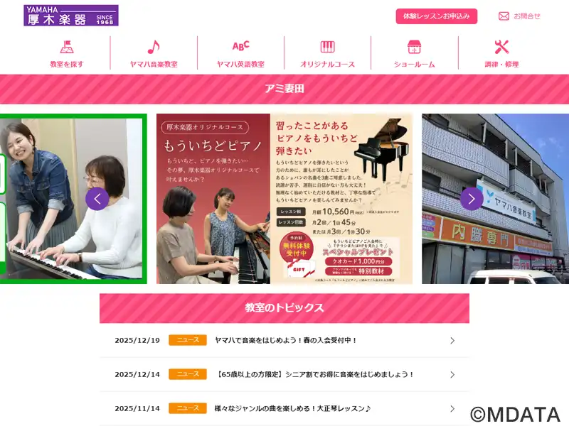 妻田北のマックスバリュ厚木妻田店の向かいにある、1968年10月に設立したヤマハ特約店厚木楽器のレッスンセンター。オリジナルレッスンの、ピアノ、ヴァイオリン、大正琴コースをはじめ、ヤマハ認定講師による共通テキスト、カリキュラムで、音楽を通してこころを育てる子ども向けの「ヤマハ音楽教室」を開講している。子どもから大人まで、初心者から上級者まで、経験豊かな指導者が親切丁寧に指導する。教室レンタルも可能。