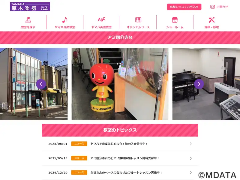 そうてつローゼン海老名店の向かいにある、1968年10月に設立したヤマハ特約店厚木楽器のレッスンセンター。オリジナルレッスンの、ピアノ、ヴァイオリン、フルート、オカリナコースをはじめ、ヤマハ認定講師による共通テキスト、カリキュラムで、音楽を通してこころを育てる子ども向けの「ヤマハ音楽教室」を開講。経験豊かな講師が丁寧に指導する。相鉄バス第5バス停から徒歩1分。共用駐車場を2時間まで利用できる。