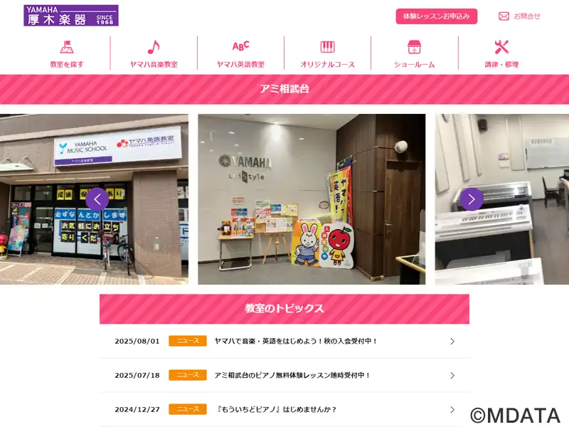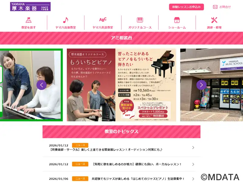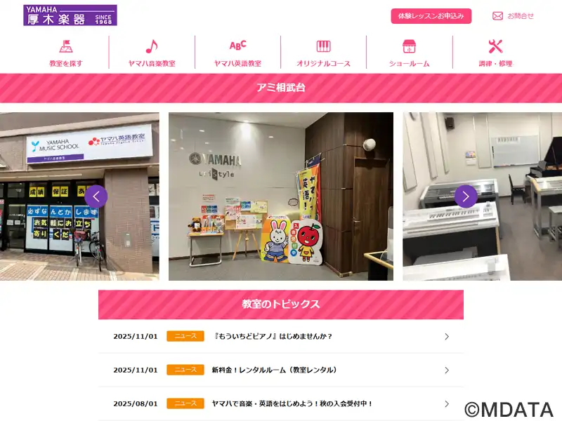 神奈川県座間市の相武台前駅から徒歩3分の場所に2015年にオープンした、厚木楽器のレッスンセンター。ヤマハユニスタイル導入。オリジナルレッスンの、ピアノ、ヴァイオリン、フルート、オカリナをはじめ、ヤマハ認定講師による子ども向けの「ヤマハ音楽教室・英語教室」、大人のための「ヤマハミュージックレッスン」などを開講。初心者も安心して学べるまた、レンタルルームも利用可能でレッスン以外に様々な用途に利用できる。