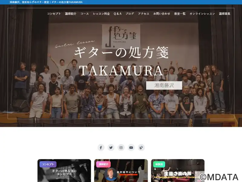 湘南藤沢にある高村尚平氏が指導するギター教室。初心者から安心して始められるオリジナルカリキュラムで、ギタリストとしての土台作りをしっかり行い、楽しく挫折ゼロで上達に導く。エレキギターコースではポップス、ロック、ブルース、ジャズ、フュージョンを学び、アコースティックギターコースではフォークソング、ボサノバ、ジャズなどを学べる。県外からも多数の生徒が受講し、発表会ライブイベントを毎年開催している。