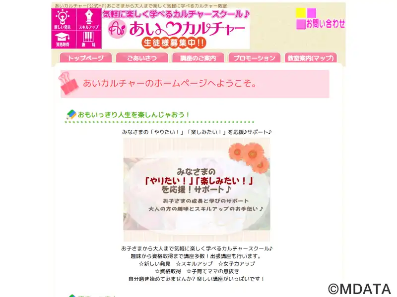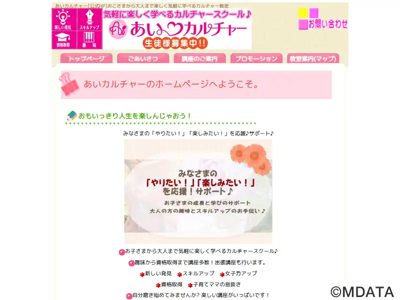 千葉県市原市にある、子どもから大人まで楽しく学べるカルチャースクール。音楽コースでは、ピアノやフルート、大正琴・文化箏、リトミックなどを開講し、趣味から資格取得までサポートする。子育て中の方でも子供連れで参加できる講座もあり、安心して学べる環境を整えている。教室内は明るく暖かい雰囲気を持ち、土足禁止で幼児でも安心。子育て世代を応援しながら、新しい発見やスキルアップをサポートするプログラムを提供する。