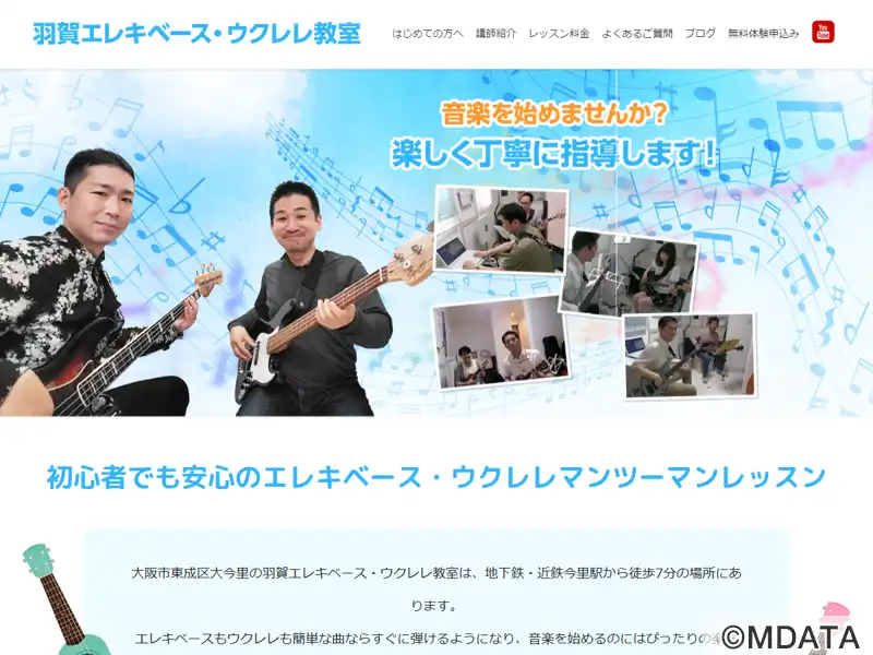 大阪市東成区にあるエレキベース&ウクレレ教室。ヤマハ認定講師による個人レッスンで、初心者から上級者まで幅広く対応しており、ロック、ジャズ、ハワイアンなどジャンルも多彩。レッスン内容は生徒の目的やレベルに応じて柔軟に調整され、基礎技術から音楽理論までを段階的に学べる。指導歴のある講師による丁寧な指導と、希望者にはセッション形式での発表の機会もあり、実践的な経験も積むことができる。レッスン日時も相談可。