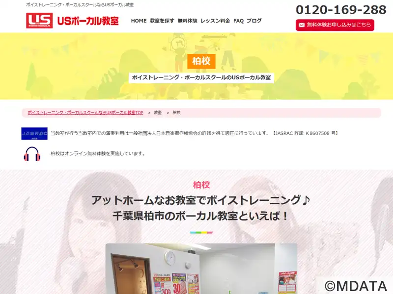 千葉県のJR柏駅東口より徒歩5分に位置するUSボーカル教室の柏レッスンセンター。初心者から本格的に学びたい方まで、幅広い年齢層に対応したボイストレーニングを提供。マンツーマンやグループ、親子・ペアレッスンなど多彩な形式があり、目的やレベルに応じた丁寧な指導が特徴。高音発声や腹式呼吸の練習、持ち歌づくりといった技術面の指導の他、交流の場もあり。講師の的確なアドバイスとアットホームな雰囲気で楽しめる。