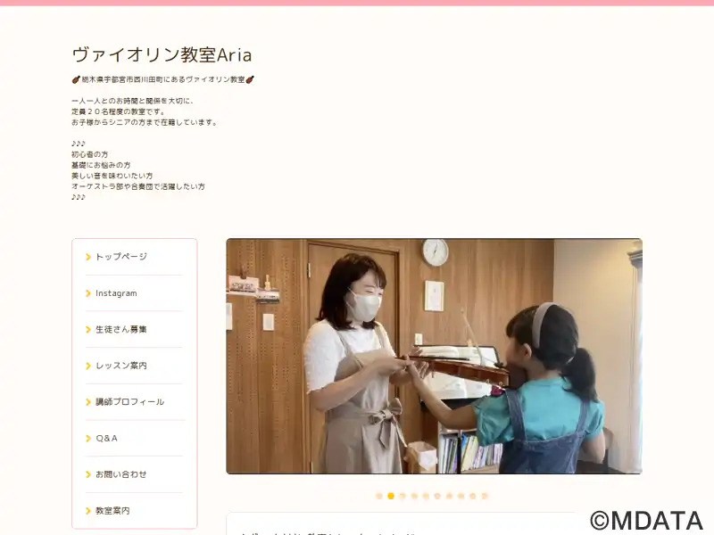 栃木県宇都宮市にある音楽教室。2014年に栃木県鹿沼市で開講し、2020年に現在地に移転した。幼児から大人まで幅広く受け入れ、基礎を重視しながら、ヴァイオリン演奏の技術や表現力の向上を目指して、個人レッスンを行なっている。音楽的自立を目指し、生徒が自分で楽譜を読み、練習し、感情を込めて演奏する喜びを体験できるようサポートしている。ソロやアンサンブルで、年に一度の発表会で実践的な成果発表の機会がある。