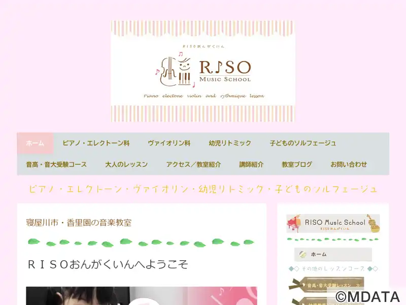 大阪府寝屋川市にあるアットホームな音楽教室。ピアノ、エレクトーン、ヴァイオリンの個人レッスン、2歳・3歳向けのリトミックや大人向けレッスン、ソルフェージュ、保育士志望者向けの幼児教育ピアノ、音高・音大受験コースなど、多彩なコースを用意。生徒一人ひとりの目標や個性に寄り添った指導で、基礎技術と表現力を育てる。温かな雰囲気の中で生徒と講師が心を通わせ、音楽を通じて感性や自己表現力の成長を大切にしている。
