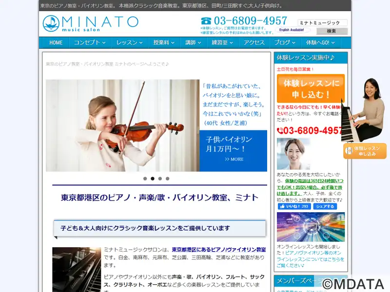 東京港区芝浦を拠点とするクラシック専門の音楽教室。ピアノ、バイオリン、チェロ、フルート、サックス、クラリネット、声楽、ソルフェージュなど、多彩な楽器のレッスンを提供し、0歳から大人まで幅広い年齢層に対応。東京藝大や桐朋学園大学など名門音大出身の講師が、優れた演奏技術と指導力で丁寧に指導する。20部屋のレッスン室やサントリーホールなどでの発表機会が整い、初心者から音大志望者まで学びやすい環境が特徴。