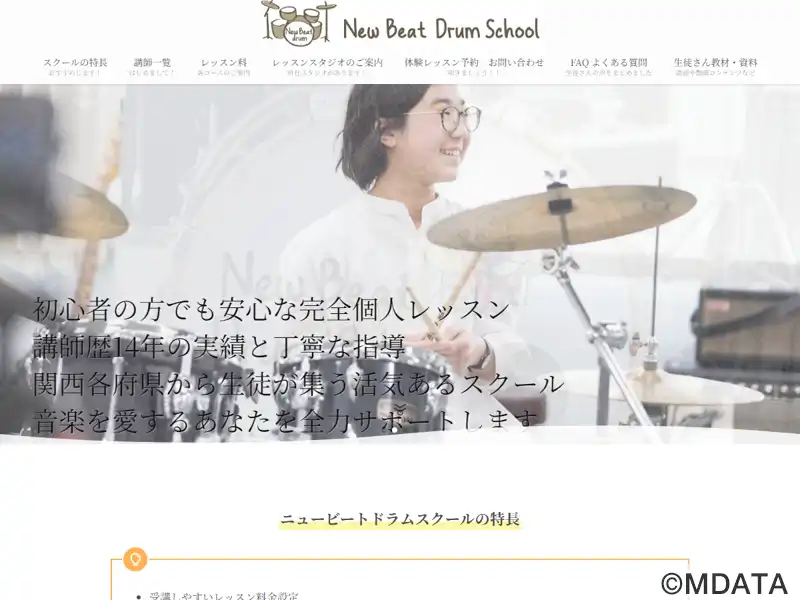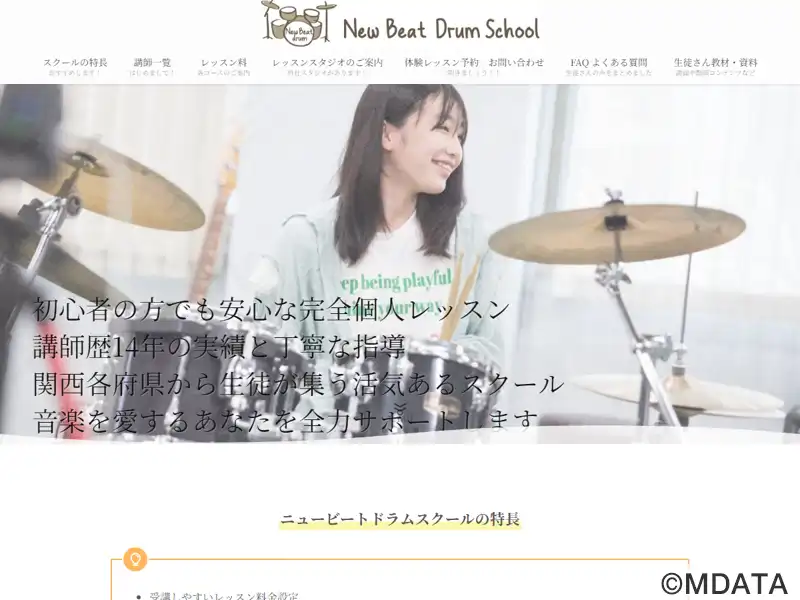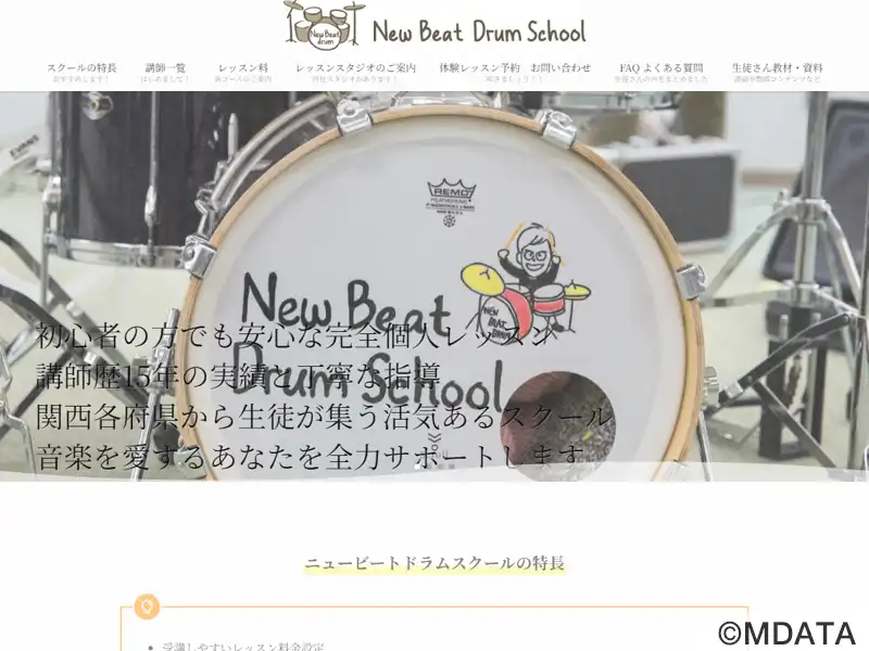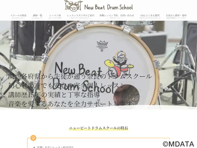 奈良県広陵町に2014年開校したドラムスクール。基礎を重視しつつ個性を伸ばす完全マンツーマン形式で幅広い年齢層に対応する。2台のドラムセットを用いた実践的なレッスンや、ギターやベースによる伴奏を交えた指導で、初心者からプロ活動者まで学べる環境が整う。自社スタジオでの生ドラム練習や録音・撮影も可能で、バンド活動やアンサンブル体験を通じた音楽の楽しさも重視。さらに地域イベントやジャムセッションを開催。