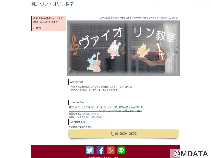 江戸川区のJR小岩駅から徒歩5分にあるアットホームな音楽教室。豊富なヴァイオリン指導経験を持つ桃井陽子氏(東京音楽大学卒業)が始動する。初心者には音符の読み方やリズムの取り方から丁寧に指導し、経験者には目標に合わせたレッスンを提供。学生や大人向けの月2回などのレッスンも対応。親子や友達同士のペアレッスンにもあり。楽器のレンタルもあり手ぶらでの受講も可能。年に一度、練習の成果を披露する発表会を開催