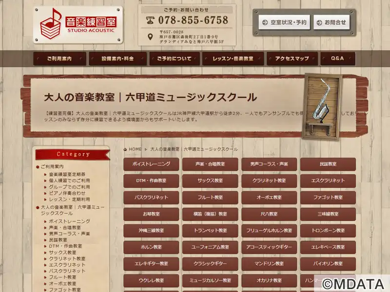 JR六甲道駅から徒歩2分の大人の音楽教室です。経験豊富な講師陣が初心者から経験者まで、一人一人の個性やペースに合わせて親切・丁寧にレッスンいたします。ボイトレや管楽器、弦楽器はもちろん、和楽器、ボタンアコーディオン、ティンホイッスルなど、他ではあまりない個性的な講座も充実。一人でも気軽に使える音楽練習室を併設し、環境面からもサポート。私たちと一緒に音楽を楽しみましょう。