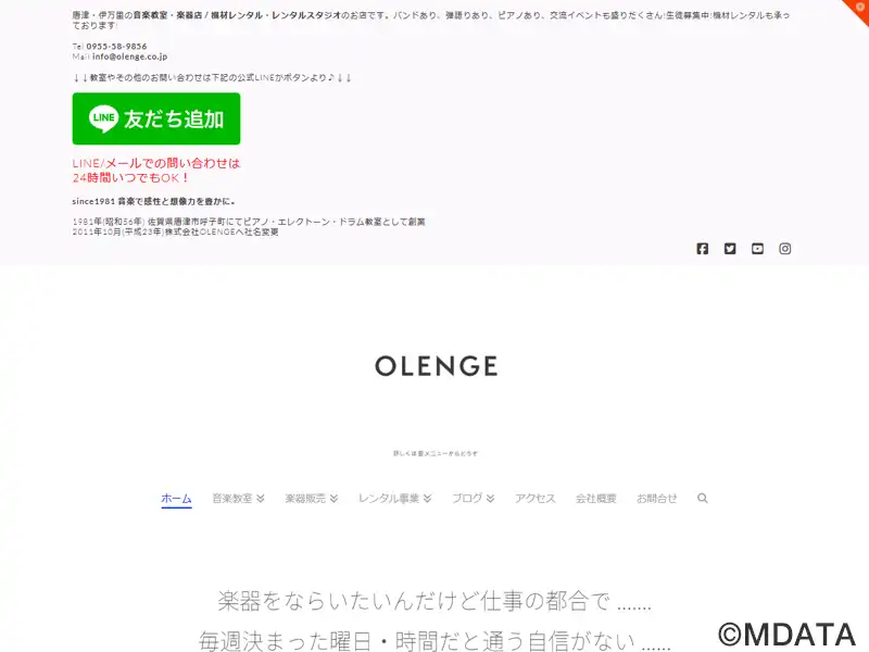 唐津市にある、1981年に創業の音楽ショップで、音楽教室、楽器店販売、機材レンタル・レンタルスタジオを提供する。「音を楽しむ」ことをモットーに、ギター、ベース、ドラム、ボーカル、DTM、ピアノ、サックス、オカリナ、クラリネットなどのコースを開講。レッスンは、基礎から始め、本人のやりたい曲やジャンルを中心に学べる。生徒同士でバンドを組んだり、イベントに出演したり、人と人がつながる企画も主催している。