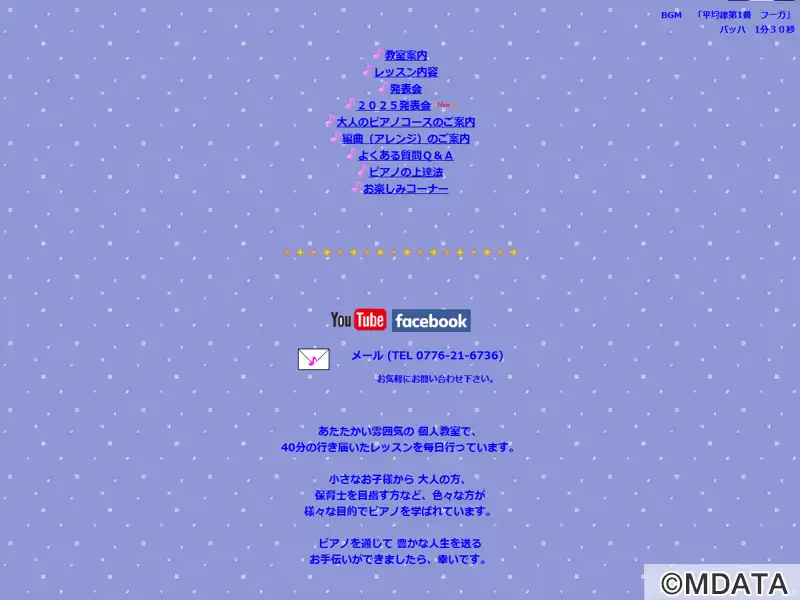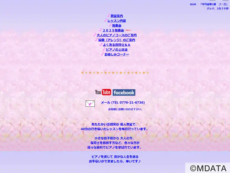 福井市三郎丸町に2006年開講した音楽教室。アットホームな雰囲気の中で子どもからシニアまで幅広い年代が学ぶ。ピアノや電子オルガン、リトミックを中心に、個々のペースや個性を尊重した個人レッスンを行っており、初心者から経験者、保育士・教員を目指す方まで対応。目的や生活スタイルに合わせてコースを選べる柔軟な体制も整う。音楽を通して豊かな心を育むことを重視し、一人ひとりに寄り添った丁寧な指導を心がける。