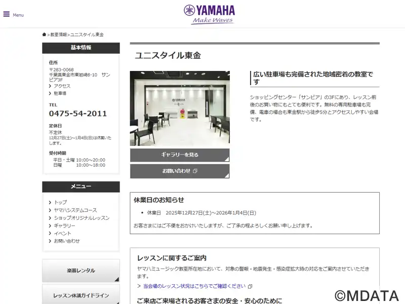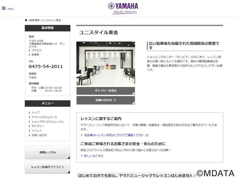 東金市のショッピングセンター「サンピア」3階にあるヤマハユニスタイルのレッスンセンター。ヤマハ認定講師による共通テキストとカリキュラムに基づくレッスンコースが用意されており、子供向けの「ヤマハ音楽教室・音楽教室」と大人にぴったりの「ヤマハミュージックレッスン」などを開講している。ピアノ、トランペット、サックス、トロンボーン、クラリネット、フルート、ホルン、バイオリン、エレクトーンなどのコースがある。