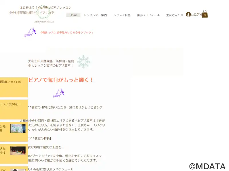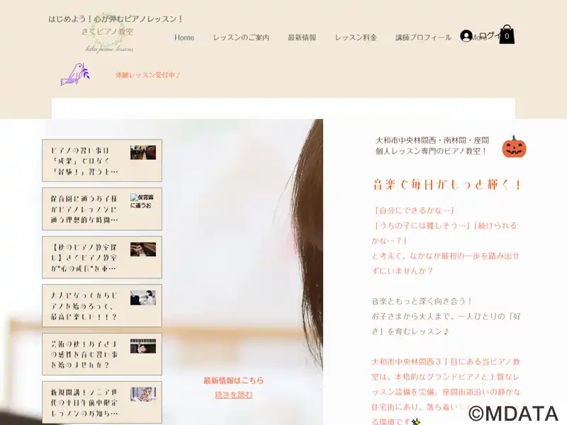 大和市中央林間西のもちのき公園近くにある、菊地加代子先生(洗足学園音楽大学卒)が指導するピアノ教室。音楽やピアノを通じた心の在り方を重視。子どものレッスンは、3歳からソルフェージュを取り入れ、基礎力を身につけ、個性を生かして表現できるよう指導している。大人のレッスンでは、短期間で様々な曲が弾けるように、わかりやすい指導と一人ひとりに合った練習法を提案し、通いやすくて楽しいレッスンを提供している。
