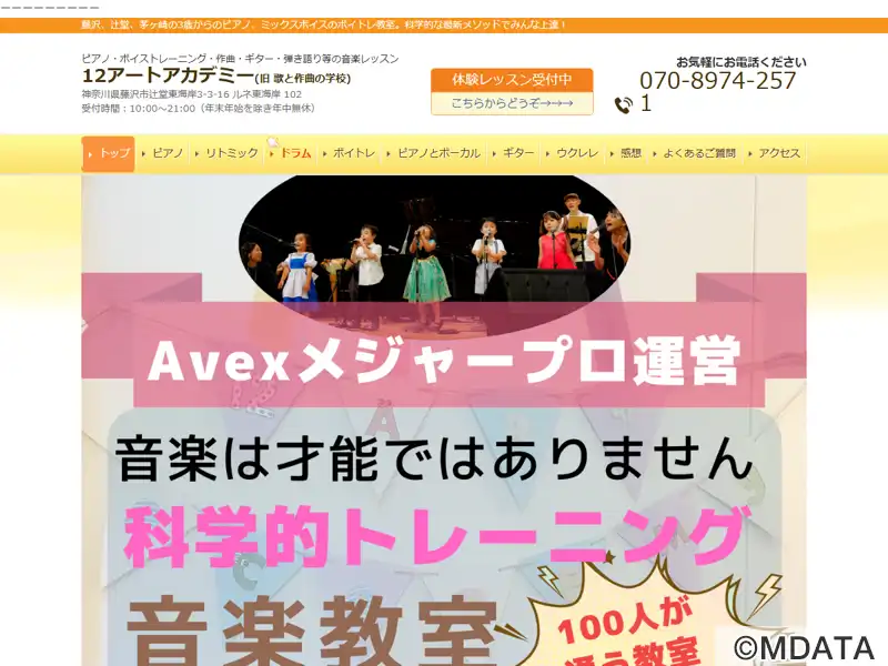 藤沢市辻堂に2015年開業した、ミックスボイスを中心としたボイトレ・ボーカルスクール。旧「歌と作曲の学校」。初心者の方からプロ志望の方まで、現役プロによるプライベートレッスン。親切・丁寧な対応をモットーに、メジャー現場で培ったノウハウを具体的にわかりやすく指導。ピアノ、作曲、ギター、ウクレレ、弾き語りのレッスンも可能。