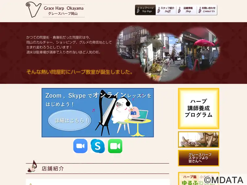 岡山市問屋町にある、アイリッシュハープ・ハンマーダルシマー教室。スクールでは楽器を貸し出しているため、初めてでも気軽に演奏を体験できる。また、楽譜が読めなくても安心して学べるよう「カタカナ楽譜」も用意されていて、マンツーマンで丁寧な指導を受けられる。店内には12弦から36弦までさまざまなハープが並び、自由に試奏することも可能です。演奏活動を目指す方や、癒しを求める方まで、それぞれのペースで学べる。