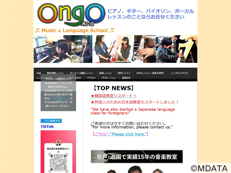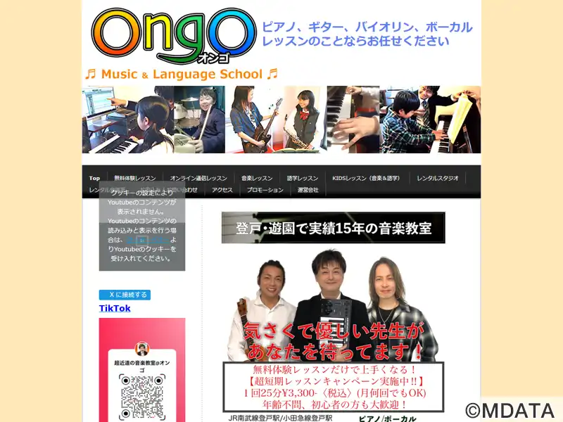 川崎市多摩区登戸にある音楽&語学教室。全講師が現役のプロミュージシャンで、各生徒のレベルと個性に対応したオリジナルカリキュラムを提供している。ボーカル、ピアノ、ギター、ベース、バイオリンからウクレレや吹奏楽器まで、幅広い楽器の指導を行う。英語レッスンも開講し、音楽や語学を通じて生徒の人生を豊かにすることを目指す。個人練習のためのレッスンルームのレンタルが可能。オンラインレッスンあり。