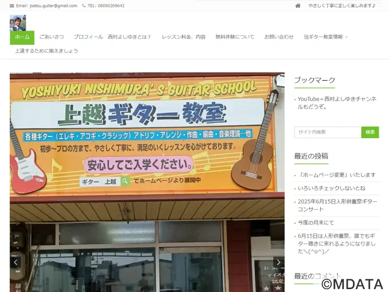 上越のギタースクールとして長年の実績があり、地域に密着したアッとホームな教室です。無料の貸しギター(クラシック、アコギ、エレキ、ウクレレ)、各種音域ギターも完備。どなたでもお気軽にギターを楽しんでもらえるような気配り、丁寧な指導を志しています。ご一緒に上手くなっていきましょう(^^♪当教室では3歳~80歳の方まで習われた実績があります。安心してご入学ください。オンラインレッスン対応。