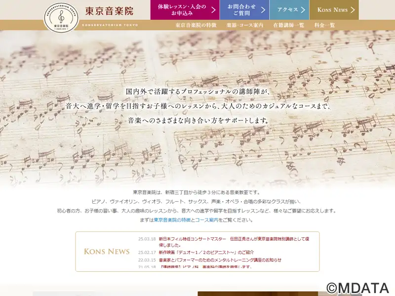 新宿区の新宿三丁目駅から徒歩3分の場所にある音楽教室。ピアノ、ヴァイオリン、ヴィオラ、フルート、サックス、声楽など多岐にわたるコースを提供する。初心者から音楽大学への進学や留学を目指す方まで、幅広く対応。著名な演奏家や海外名門音大の出身者からなるプロフェッショナルな講師陣が指導する。留学サポートや幼児音楽専門教育「森の音楽館」など、多岐にわたり音楽教育のサポートを行う。体験レッスンも開催している。