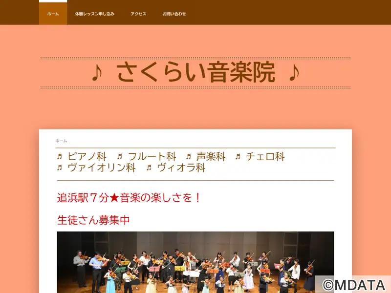 追浜駅7分の音楽教室。ピアノ、大人のためのピアノ、フルート、声楽、チェロ、ヴァイオリン、ヴィオラなどのコースを開講。各コース実績ある講師がひとりひとりに合ったメニューを作成し、初歩から親切にレッスンします。初心者の方、大歓迎。楽器に実際に触れて音を出して、楽しさを実感して下さい。発表演奏会では4才~87才の生徒さんが一緒に楽しく合奏しました。