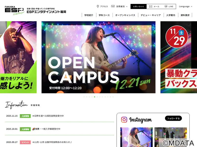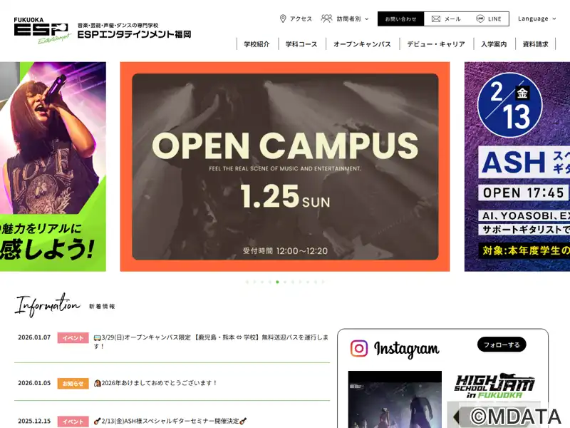 2018年に福岡市に開校した音楽、芸能、声優、ダンスを専門とする教育機関。日本のギターメーカーESPグループによって設立され、音楽およびエンターテインメント業界で活躍するプロフェッショナルの育成を目指している。経験豊かな講師陣による指導や、先進的な設備を備えた学習環境、ライブホールやスタジオなどの設備も充実。音楽ライブイベントへの参加機会などを通じて、学生一人ひとりの目標の実現をサポートしている。
