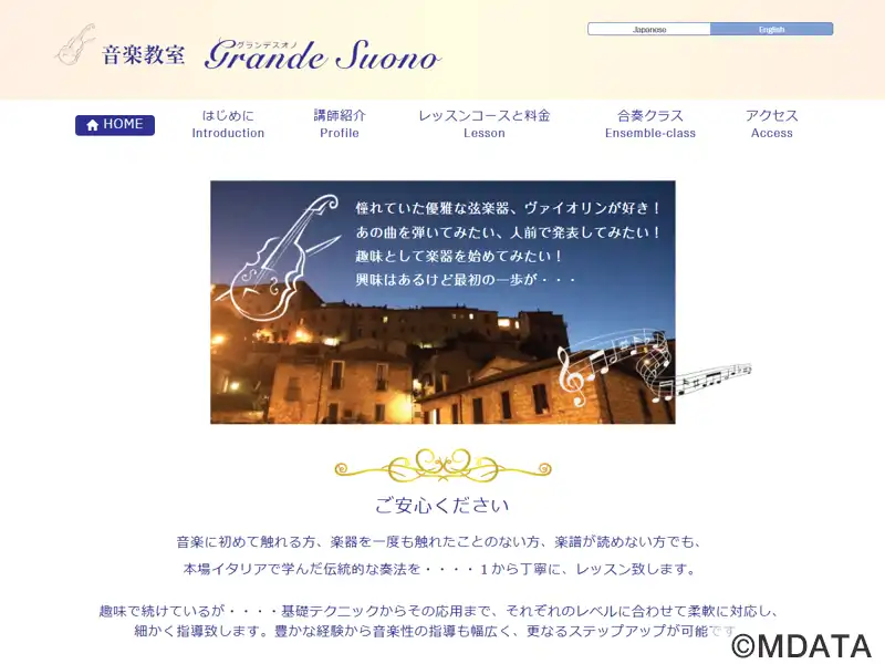 文京区本郷三丁目駅から徒歩5分の場所に位置する、ヴァイオリン・ヴィオラ・チェロ専門の音楽教室。3歳から大人まで、初心者から上級者までを対象に、一人ひとりのレベルに合わせた丁寧な指導を行っている。本場イタリアの伝統的な奏法を基に、基礎から応用、合奏クラスまで、音楽性の向上を目指す。オンラインレッスンや楽器・楽譜の購入や準備のサポートにも対応し、さらに、音楽留学を考えている方へのサポートも行なっている。