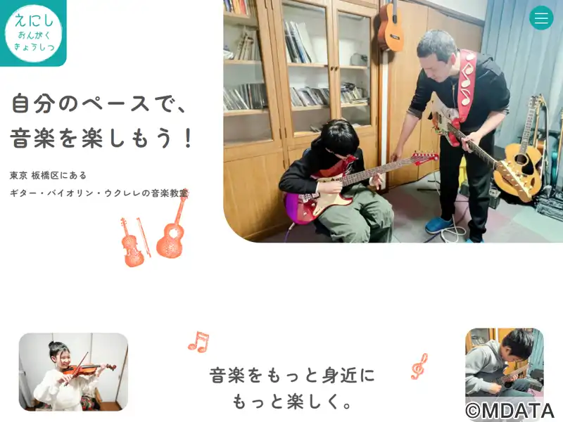 東京都板橋区に位置する音楽教室で、エレキギター・アコースティックとバイオリン・ヴィオラのレッスンを行う。幅広い年齢層を対象に、一般の教室とは異なるユニークなアプローチでもレッスンを提供する。多くのアーティストとの共演や、作曲家とし活動する講師陣により、現代の音楽シーンに即した実践的なレッスンを行う。マンツーマンレッスンを中心に、ペアレッスンなど、生徒一人ひとりのニーズに合わせた指導を行なっている。