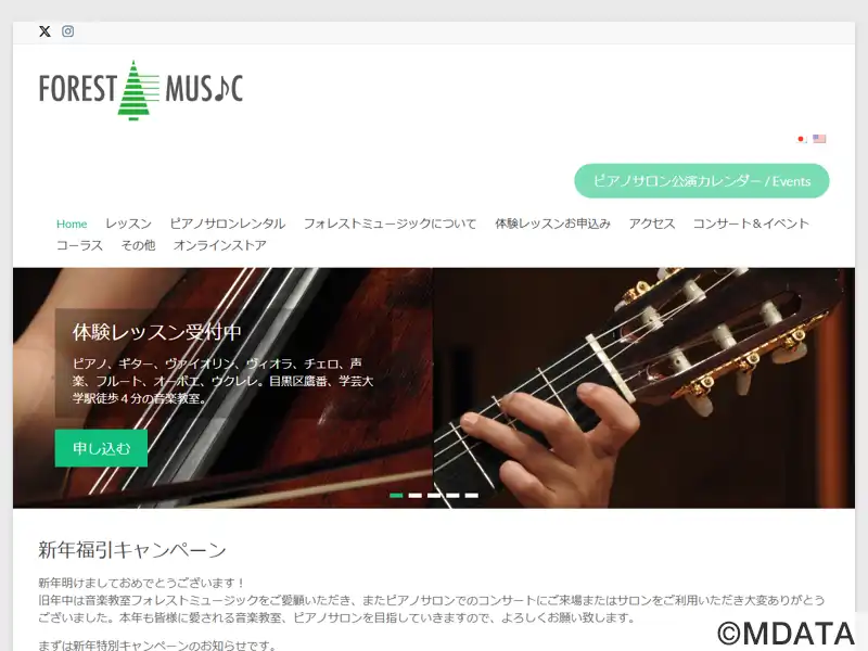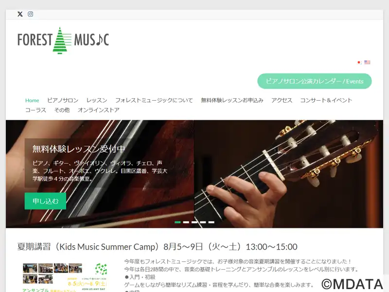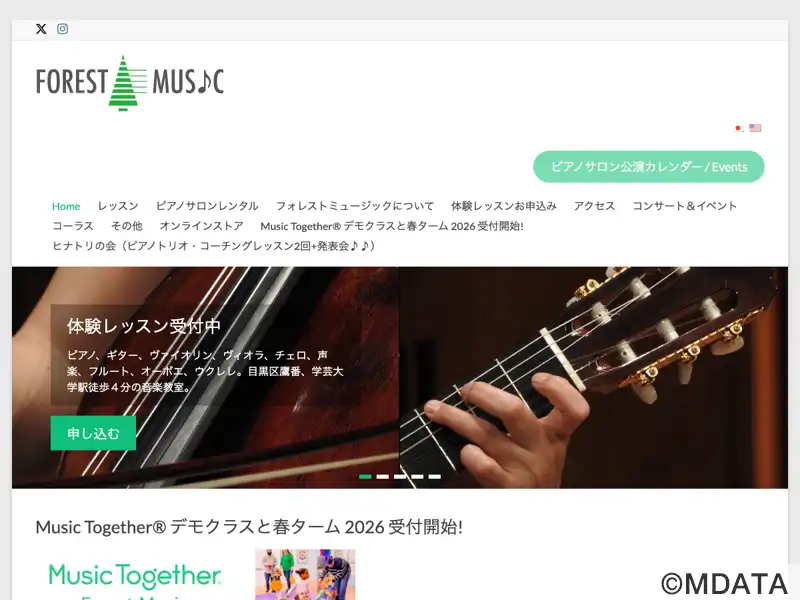 東京都目黒区の学芸大学駅より徒歩4分の場所にある音楽教室。ピアノ、ヴァイオリン、チェロ、ギター、声楽、フルート、オーボエなどのコースを開講。講師陣は音楽大学出身、半数以上がバイリンガルの国際色豊かな環境で、初心者から音大受験生まで対応。年に一度、自らの演奏を披露する発表会や、音楽鑑賞や交流会などのイベントも充実。趣味からプロ志向の方まで、幅広いニーズに応える。最大37席のピアノサロンも運営している。