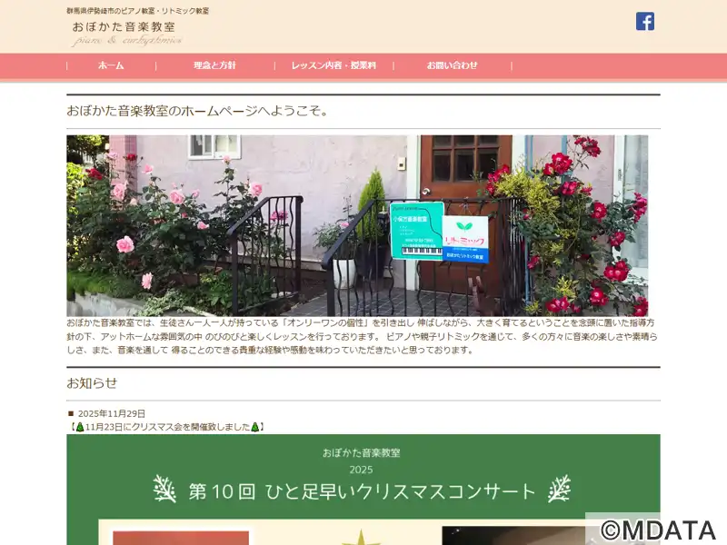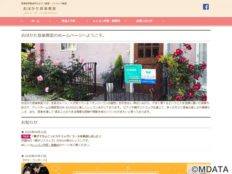 群馬県伊勢崎市にある音楽教室。5歳からを対象に、ピアノレッスンとリトミックを中心にしたレッスンを提供する。生徒一人ひとりの個性を大切にし、アットホームな雰囲気の中でのびのびとしたレッスンを心掛けている。音楽を通じての人との出会いや学びを重視し、子供たちが心豊かな人生を送れるサポートを目指している。独自のプログラムを通して、表現力や集中力の向上を目指し、季節ごとのイベントや発表会も積極的に行っている。