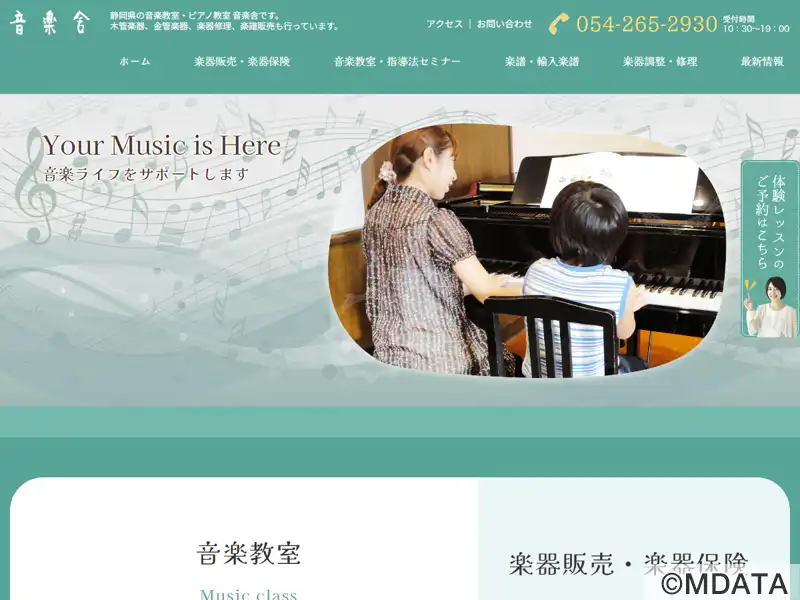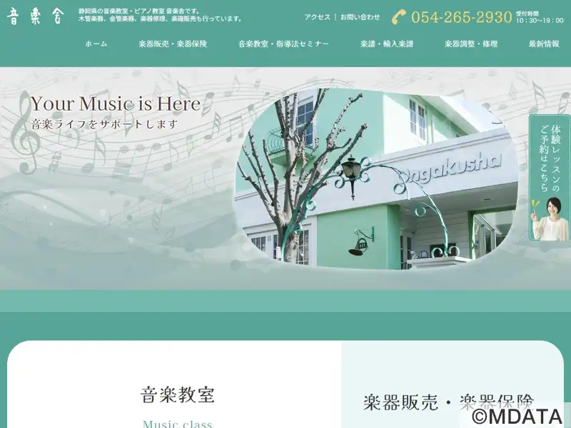 静岡市の県総合運動場駅から徒歩3分にある音楽教室。ピアノ、管楽器、弦楽器、声楽のレッスンをはじめ、子ども向けのリトルピアニストコースや、楽器がなくても始められる入門コース、大人向けの短期レッスンなど、多様なニーズに応えるカリキュラムが揃う。初心者から上級者まで、個々のレベルに応じた指導を受けられるのが特徴。楽譜や楽器の販売、点検・修理の相談にも対応し、学ぶだけでなく演奏環境のサポートも充実している。