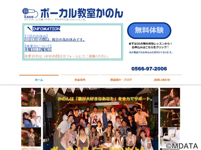 愛知県安城市のアンディショッピングセンター安城2Fに2012年にオープンした歌の音楽教室。アットホームで地域に根ざしたフレンドリーな教室。レッスンは完全マンツーマンで、腹式呼吸や発声、ストレッチ、リズム練習など歌の基礎を丁寧に指導。生徒の目的や好きな曲に合わせて、カラオケ上達やライブ出演、健康維持など幅広いニーズに対応したカスタマイズが可能。発表会やライブイベントも開催。オンラインレッスンもあり。