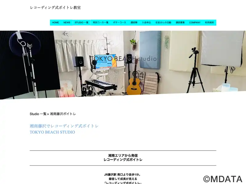 神奈川県湘南藤沢に2023年に開業した、レコーディングを軸とするボイストレーニングスタジオ。課題曲を録音し、自身の歌声を聴き返して課題を客観的に把握しながら、講師の指導のもとで発声・音程・抑揚・表現力を総合的に磨く。録音とフィードバックを繰り返すことで、歌唱技術の向上と自己理解を深めていく仕組みを導入している。レッスンは年齢や目的に応じて柔軟に設計され、初心者から経験者まで幅広く対応している。