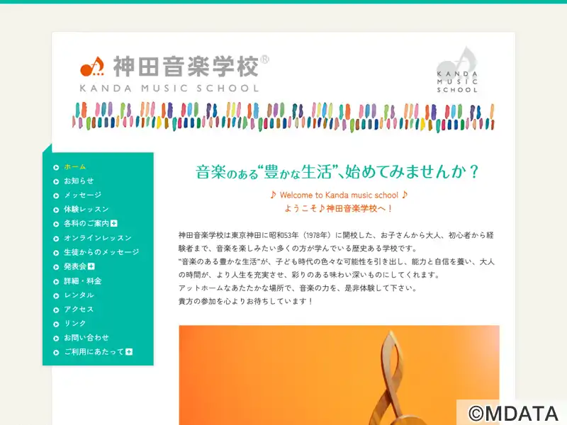 東京・神田須田町に1978年に創立した伝統ある総合音楽学校。ピアノ(クラシック、ジャズ、ポピュラー)、フルート、バイオリン、ギター、ベース、ウクレレ、声楽、ボーカル、シャンソン、尺八、琵琶、ドラム/パーカッション、ソルフェージュなど多岐にわたるコースを開講している。子供から大人、初心者からプロを志す方までを対象に、一人ひとりとの信頼関係を大切にレッスンを行っている。レッスンルームの貸し出しもあり。