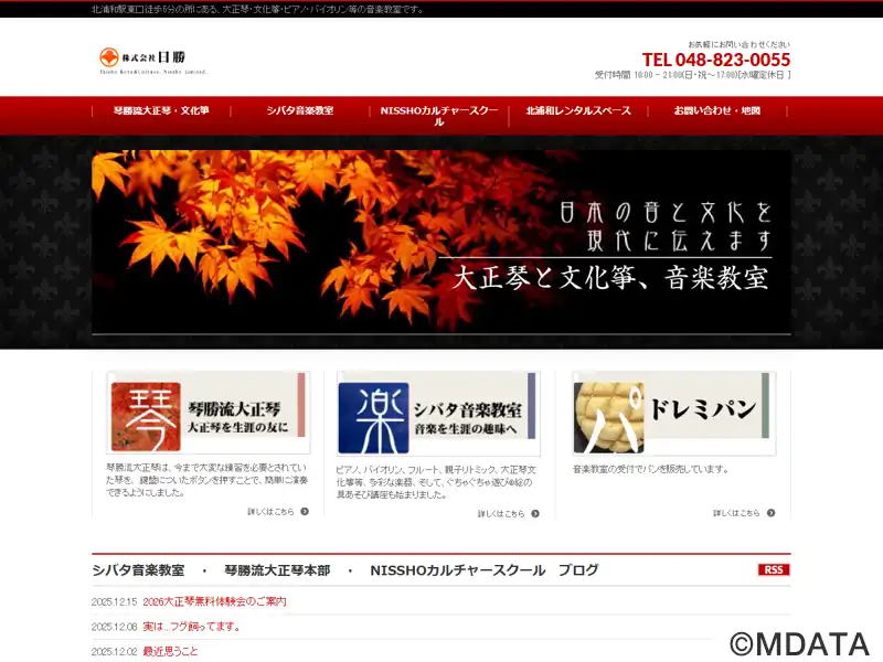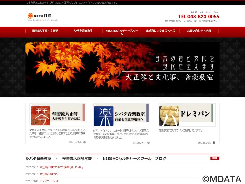 1982年に創業した北浦和の音楽教室。ピアノ、バイオリン、フルート、大正琴、文化箏などの教室を開設。楽しむ気持ちを大切にして、音楽が生活の一部になるようなレッスンを行う。専門家を目指すより、趣味として大人になった時に好きな曲や息抜きに演奏するための技術力・表現力の習得を大切にしている。全5部屋の貸しスタジオ「北浦和レンタルスペース」を併設。また、琴勝流大正琴本部として「大正琴を生涯の友に」を掲げる。
