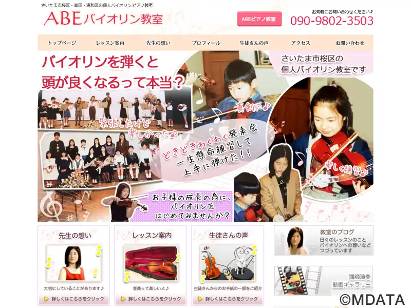 埼玉県さいたま市の中浦和駅から徒歩6分に位置するバイオリン・ピアノ教室。個人指導を基本とし、子どもから大人まで、初心者から上級者まで幅広く対応。基礎を重視したマンツーマンレッスンを通じて、正しいフォームの習得や着実な上達を目指し、音大受験やアンサンブル、趣味の演奏など、多様な目的に応じた指導を行っている。クラシックをはじめ、さまざまなジャンルにも対応しており、親子リトミックコースも用意されている。