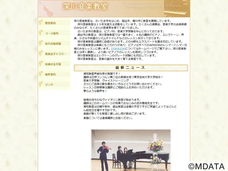 さいたま市の浦和を拠点とする1978年設立の音楽教室。ピアノ、エレクトーン、声楽、ソルフェージュ、保育科など多様なコースを提供し、エレクトーンのグレード試験対策や音楽大学受験の指導も行っています。クラシックからジャズ、ポップス、フュージョン、ラテン音楽まで幅広いジャンルに対応している。越谷教室、桶川教室もあり、教室合同の発表会や大人の発表会も開催。音楽を楽しむすべての人々に開かれた運営をしている。