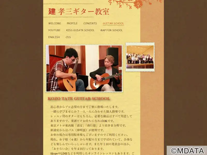 千葉県浦安市にあるギター教室。初心者からプロ志望者まで幅広い層を対象に、クラシックギターの基礎から応用までのマンツーマンレッスンを提供。初心者で譜面が読めない方や子供から中高年の様々な年齢層を対象としている。また、ギターソロやアンサンブルの指導も行っており、年に1回の発表会や年4回の「おさらい会」も開催。オンラインレッスンも提供している。教室には必要な楽器や備品が整い、専用駐車場も完備している。