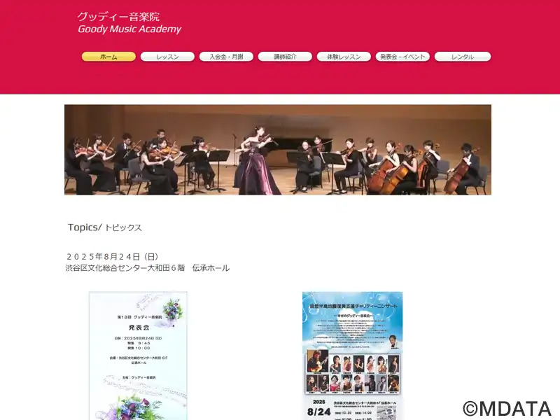 渋谷道玄坂にあり、ヴァイオリン教室・ヴィオラ教室・チェロ教室・フルート教室・トロンボーン教室・ギター教室・ヴォーカル教室・ピアノ弾き語り教室・ヴォイストレーニングなどがあります。プレイヤーとしても活躍している先生方の親切な指導で音楽の楽しさを実感して下さい。完全防音の練習室レンタルもいたしております。