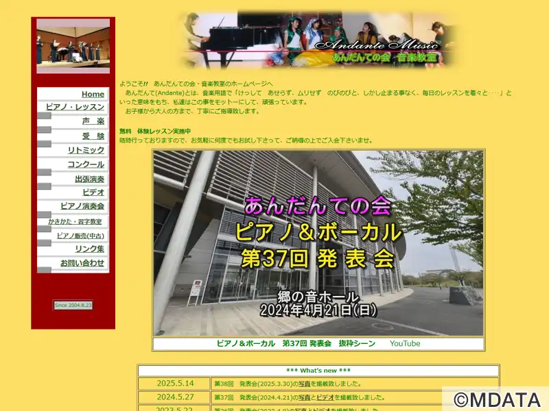 三田市すずかけ台にあるピアノ・声楽・リトミックの教室。幼児からシニアまで、基礎を着実に、初歩から丁寧に指導している。0歳からのリトミックグループレッスン、ピアノ・声楽の個人レッスンのほか、大人のお楽しみコースでは憧れの曲や好きな歌をマイペースで習得できる。また、ソルフェージュや楽典、音大受験・教員採用試験の対策指導も行っており、希望者はピアノコンクールやPIARAグレードテストに挑戦できる。