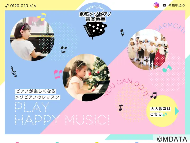 京都市内4ヶ所(河原町、御所南、御池、二条)でレッスンを展開するメゾピアノ音楽教室。楽しくなければ音楽じゃないをモットーに、ピアノ、リトミック、バイオリン、キッズドラムなどさまざまなコースを開講。クラシックからポピュラー、どんな曲でも講師が丁寧に指導します。趣味からグレード取得、現役の先生や資格試験対策レッスンまで独自のカリキュラムで受講可能です。