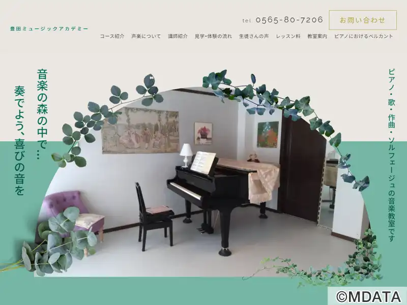 豊田市美里にあるピアノ・声楽・ソルフェージュ・作曲の音楽教室。アットホームな雰囲気で、子供から大人、初心者から音楽を職業とする専門家まで幅広い層に対応したコースを提供。子供向け「メロディーランド」では、音楽を通じて集中力や創造力、表現力を育み、個々の感性を重視。大人向けコースは、初心者から経験者まで個々のペースや目標に合わせた指導を行う。専門コースでは、受験対策や演奏家・指導者のスキル向上を支援。