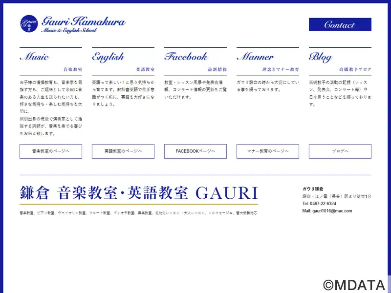 鎌倉・長谷にある音楽教室。現役の演奏家が講師を務め、ピアノ、ヴァイオリン、フルート、声楽など多様な個人レッスンを行う。乳幼児向けの音楽あそびや、ソルフェージュ、聴音、楽典まで幅広いカリキュラムを用意。子どもの情操教育から大人の趣味、音大受験や専門家志望まで幅広く対応する。発表会ではアンサンブル演奏も取り入れ、参加者同士の交流や実践の場を提供。感性や表現力を大切にし、楽しさを重視した丁寧な指導を行う。