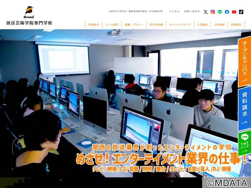 関西の放送業界が1986年に創設したライブ・映像・俳優のプロを育成する専門学校。業界のプロから直接学べる多彩な学科・コースを用意。実践的なカリキュラムで多くの作品を制作し、ステージ経験を積むことができる。また、授業は少人数制を採用しており、プロとしての心構えや知識、技術、最新情報など即戦力を身につける。また、産学連携プロジェクトにより、実際にオンエアされる番組の制作やステージに出演する機会を提供する。