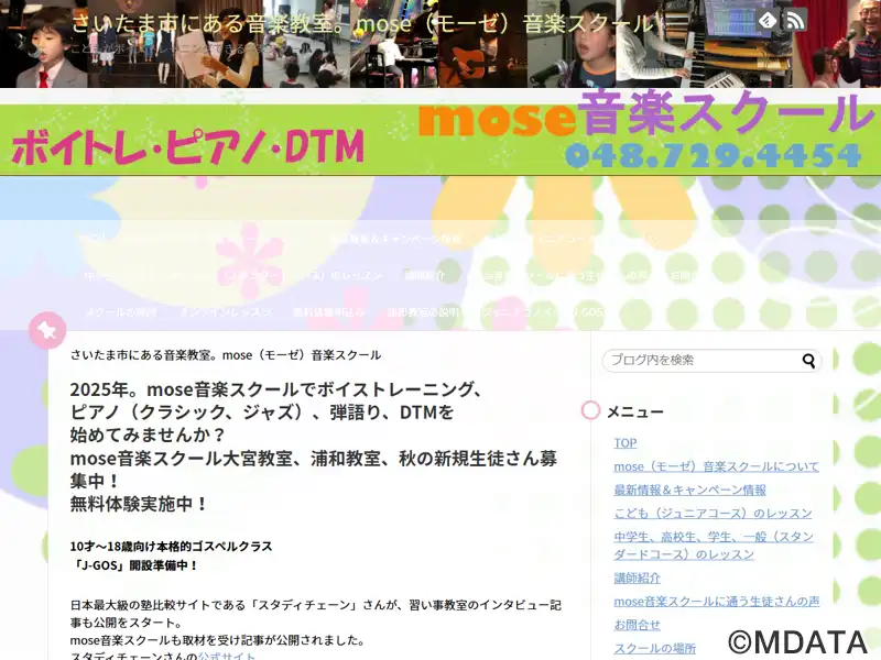 さいたま市大宮区にある音楽教室。ボイストレーニング、ピアノ、DTMの3コースを開講している。明るい教室と、ハイレベルな講師陣が特徴。ボイストレーニングでは、発声法や呼吸法の基礎を学び、コミュニケーション能力の向上も目指す。ピアノコースではクラシック、ジャズ、ポピュラーなど多様なジャンルに対応。DTMレッスンでは、音楽制作の基礎から学ぶことができる。初心者からプロ志望まで幅広いレベルを対象としている。