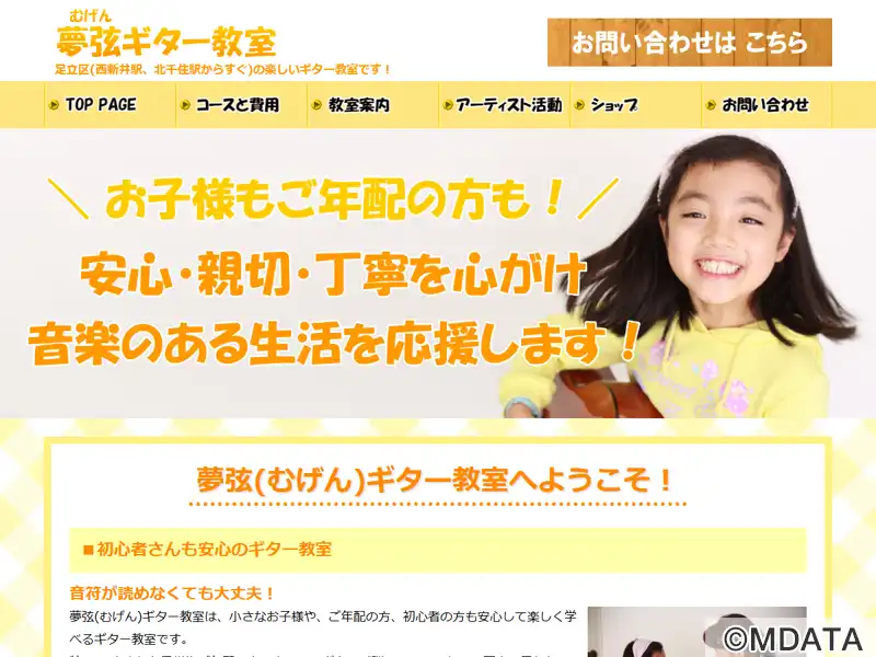 足立区にある安心・新設・丁寧なレッスンを行うギター教室。小さな子どもからシニア、音符が読めない初心者でも楽しく学べる環境を提供。ギターの基礎からコード伴奏、ソロギター、さらにはアレンジや作曲の基礎まで、幅広い内容をマンツーマンで学べる。無料でギターの貸し出しもあり、手ぶらで参加できる。アットホームで和やかな雰囲気の中、生徒のスキルアップをサポートし、音楽のある生活を応援する。オンラインレッスンあり。