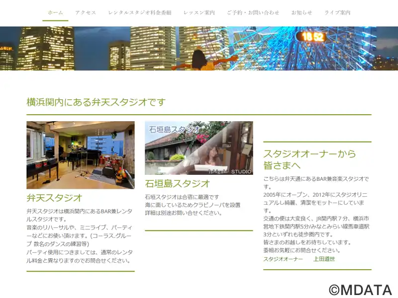 横浜市関内の弁天通りにあるレンタルスペース&音楽教室。セッションやライブイベントを開催し、忙しい日常から離れて、音楽に触れる機会を提供している。音楽教室ではピアノ、ドラム、ボーカル、サックスなどのコースを開講し、初心者から経験者まで、ソロ演奏はもちろん、ベースやドラムとの合わせ練習も可能。オーナーの上田道世氏(元ヤマハPMS講師)が、個人のレベルに合わせた、楽しく続けていけるレッスンを行っている。