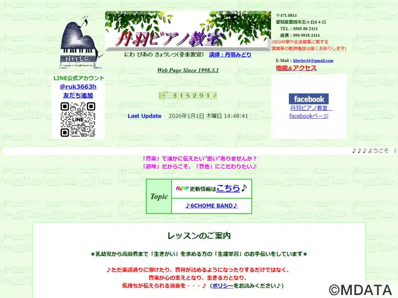 豊田市五ケ丘にあるピアノ教室。年齢や経験を問わず、音楽を楽しみたい方ならどなたでもレッスン可能。広くて明るいレッスン室に、グランドピアノや多種多様な楽器を用意。個人レッスンのメリットを生かし、基礎力をつけながら個性をのばす指導を心がけている。また、発達障碍児向けプログラムもあり、ソルフェージュやエレクトーン、パソコンを使ったレッスンにも対応。コンサートやボランティア演奏などの機会も設けている。