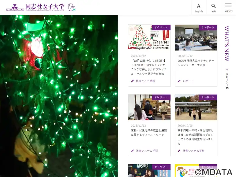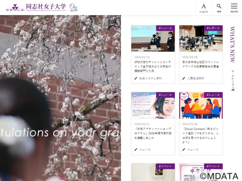京都府京田辺にキャンパスのある、同志社女子大学学芸学部の音楽学科。1876年創立の女子塾を前身に、1949年に設置されたキリスト教系の私立総合大学。音楽学科では「演奏」と「音楽文化」の2つの専攻を用意。演奏専攻では、声楽・鍵盤楽器・管弦打楽器の3コースで専門実技を磨く。音楽文化専攻では、音楽学・音楽療法・音楽創作の3分野を設け、音楽を文化的側面から研究し、幅広く社会に貢献できる専門家を育成する。