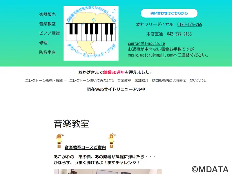 稲城市向陽台の公園通りにあるタカハシミュージックプラザ向陽台支店の音楽教室。3歳から大人まで、初心者から気軽に習えるマンツーマンの個人レッスンを提供。ピアノ(クラシック・ポピュラー)、エレクトーン、バイオリン、ギター、ベース、ウクレレ、クラリネット、フルート、ドラム・マリンバなど種類豊富なコースがあり、月謝制とお試しチケットレッスンを用意。木管楽器リペアも行っている。