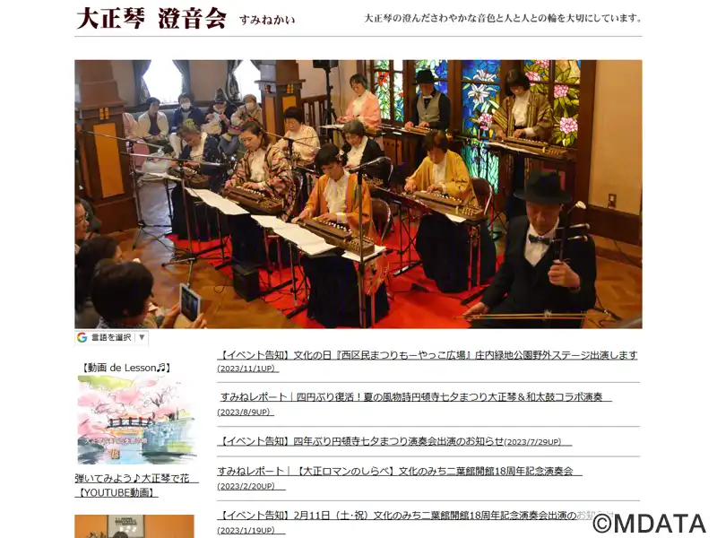 名古屋市にある、大正琴友の会「澄音会」が運営する大正琴教室。三世代にわたる幅広い年齢層が参加しており、世代を越えた繋がりやコミュニケーションが魅力。マンツーマンレッスンからグループレッスンへ移行することで、基本が身につくまで個別指導を行う。多ジャンルの曲にチャレンジして、大正琴の楽しさや魅力が日常の一部となることを目指す。上級コースでは、伝統文化の邦楽を指導。大正琴の奥深い魅力を楽しむことができる。