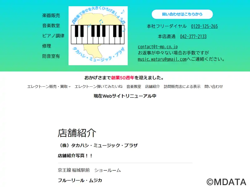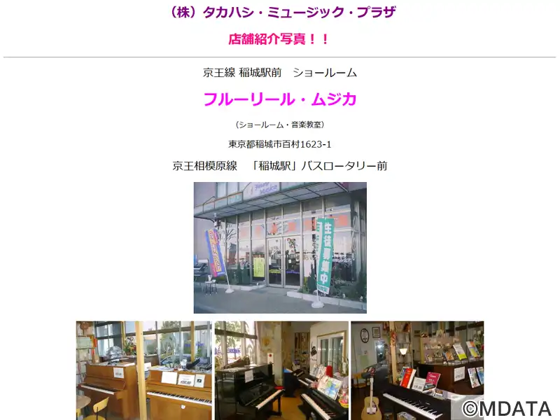 稲田堤駅の南側バスロータリー前にあるタカハシミュージックプラザの音楽教室。1階がセブンイレブンのビル2階にあり、ピアノ、エレクトーン、ハープ、バイオリン、フルート、ドラム、ギター、ウクレレ、フルート、トランペット、サクソフォン、リトミックなど、3歳から大人まで豊富なコースを開講。年間48回のマンツーマン個人レッスンで、初めての方のお試しチケットレッスンも用意。